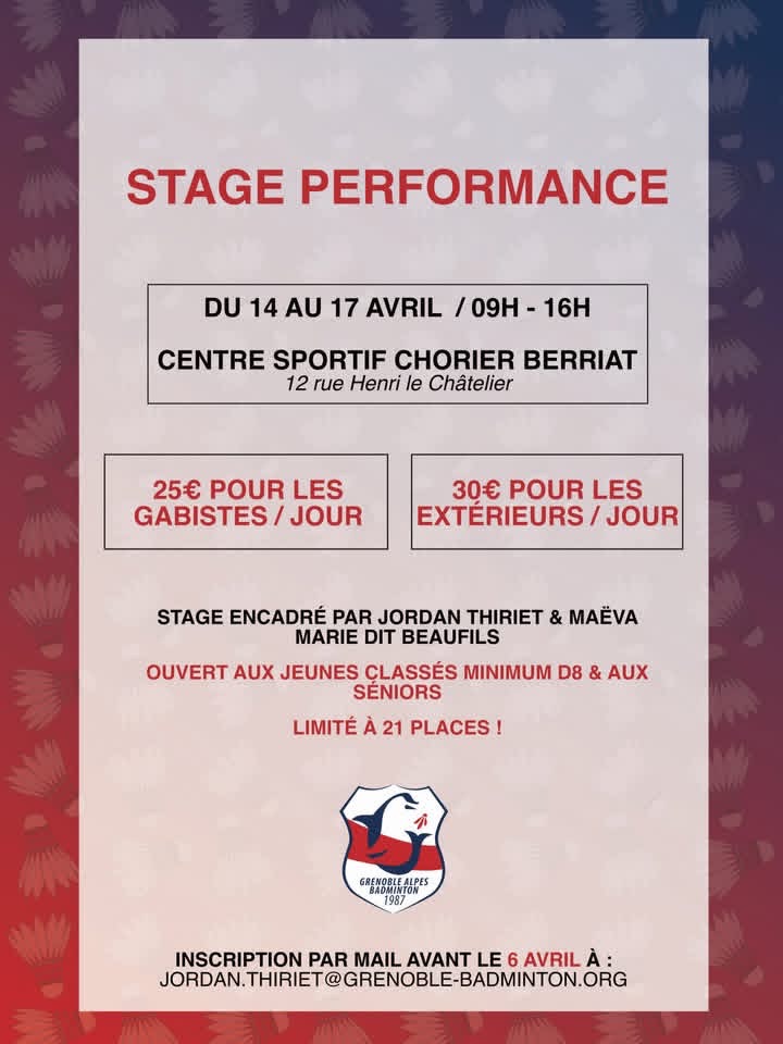 Inscriptions par mail à jordan.thiriet@grenoble-badminton.org avant le 6 avril 2026.