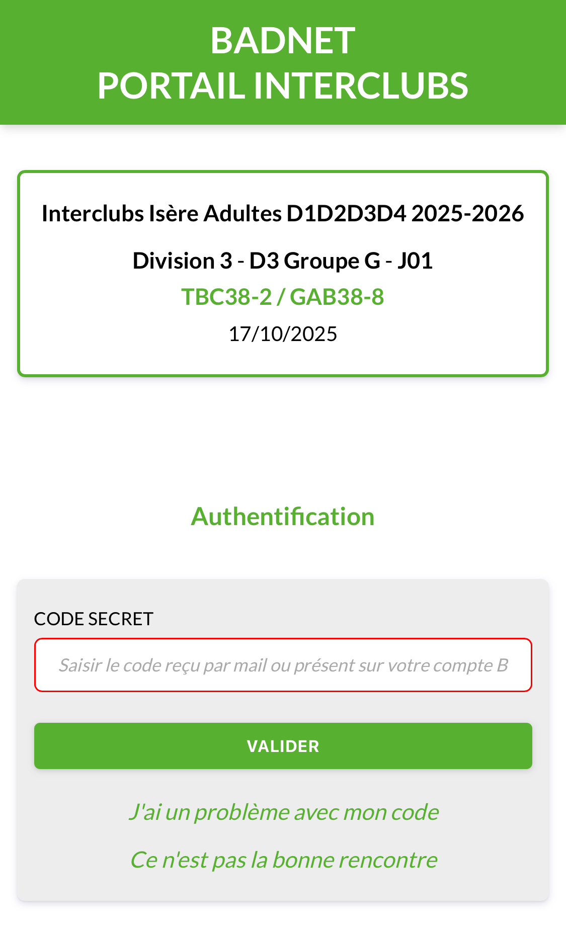 Après la rencontre les capitaines disposent de 2 semaines pour saisir le score de la rencontre sur le site IcBad. Lorsqu’un capitaine saisit un score, le capitaine adverse doit valider la saisie.
